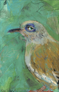 Here are the pieces for the Miniature Show at the Cedarburg Cultural Center. It is a juried show and a fund raiser for the center. The total size of the pieces needed to be less than 25 inches square. These pieces are 4" x 6" not including the frames. A bit smaller than I usually work. They are oil pastel drawings over photographs in which the figure has been cut out. I call them soulful birds.